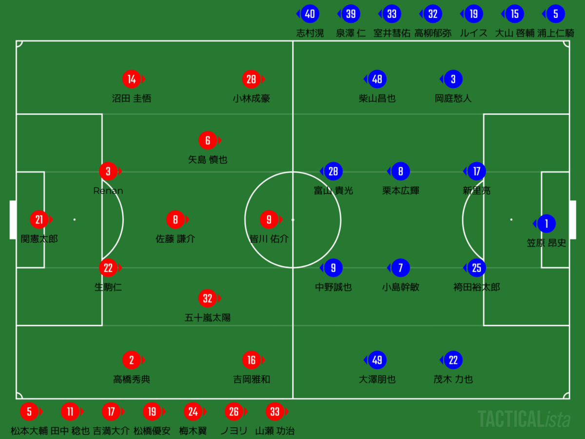 上述のシーンのように自分たちの形は出せどもひっくり返されることや、形さえも取れなくなったときに、上位に来るチームはこのほころびは見逃してくれないでしょう。最終ラインが踏ん張ってくれたものの、ここは今後は要改善になってくるのかと思います。